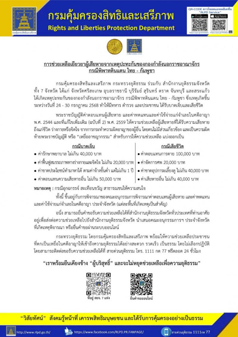 การช่วยเหลือเยียวยาผู้เสียหายจากเหตุปะทะของกองกำลังนอกราชอาณาจักร กรณีพิพาทดินแดนไทย - กัมพูชา