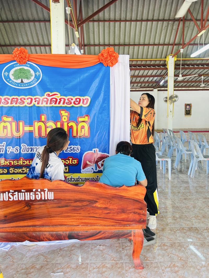 description โดย นางสาวสังวร ทองคำวัน ผู้จัดโครงการตรวจคัดกรองมะเร็งตับ-ท่อน้ำดี นำเจ้าหน้าที่ ไปจัดเตรียมสถาณที่ เพื่อเตรียมความพร้อมในการอบรมโครงการตรวจคัดกรองมะเร็งตับ-ท่อน้ำดี person admin