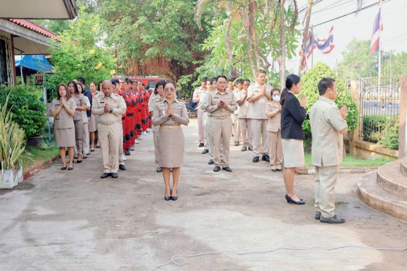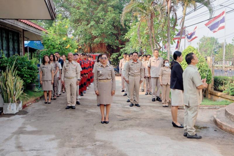 description โดย นายคำปุ่น บุญสาลี นายกองค์การบริหารส่วนตำบล มอบหมายให้ นางสาวจิรัชยา คงบวรทิพย์ ปลัดองค์การบริหารส่วนตําบล นำพนักงานส่วนตำบล พนักงานจ้าง เข้าแถวเคารพธงชาติ person admin