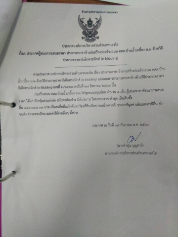 เรื่องประกาศผลผู้ชนะก่อสร้างถนนคสล.บ้านน้ำเกลี้ยงหมู่ 2