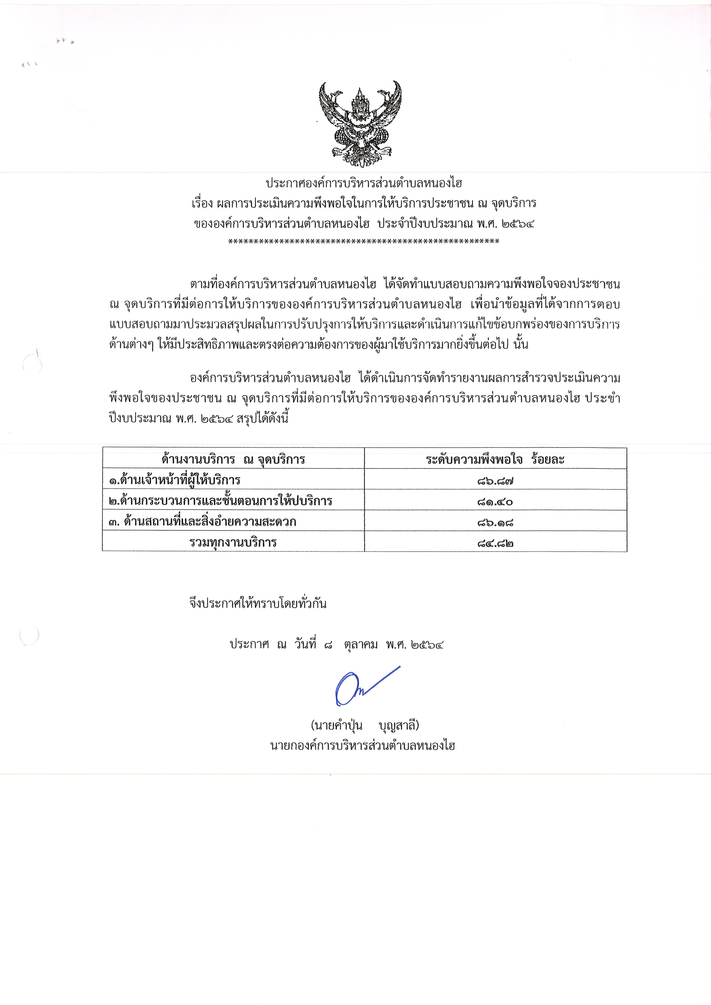 ผลการประเมินความพึงพอใจในการให้บริการประชาชน