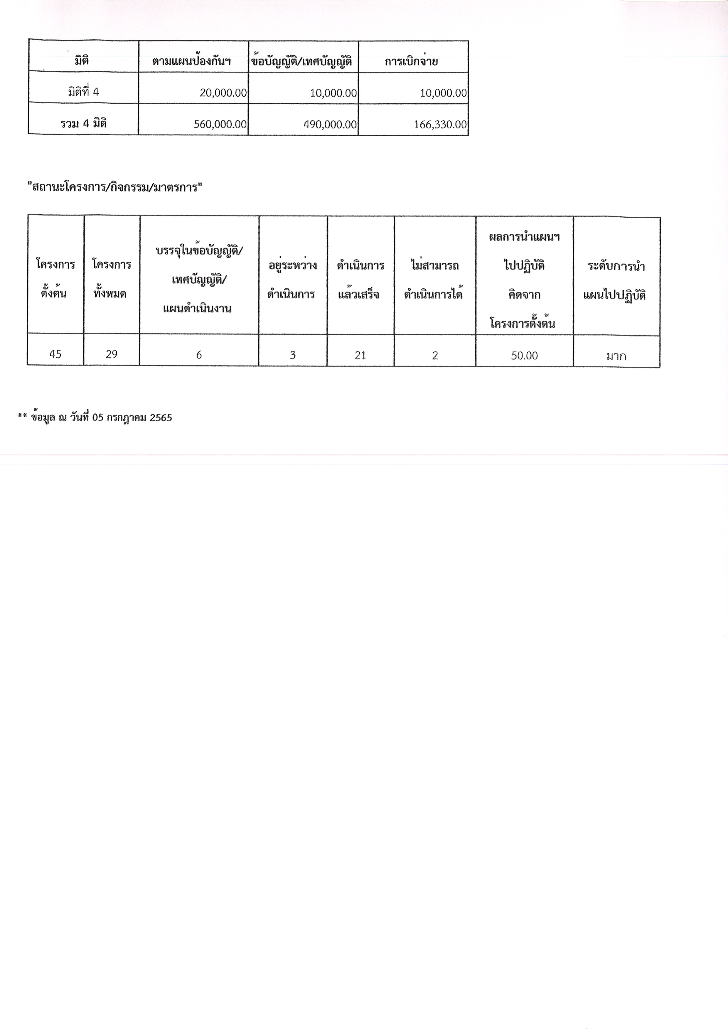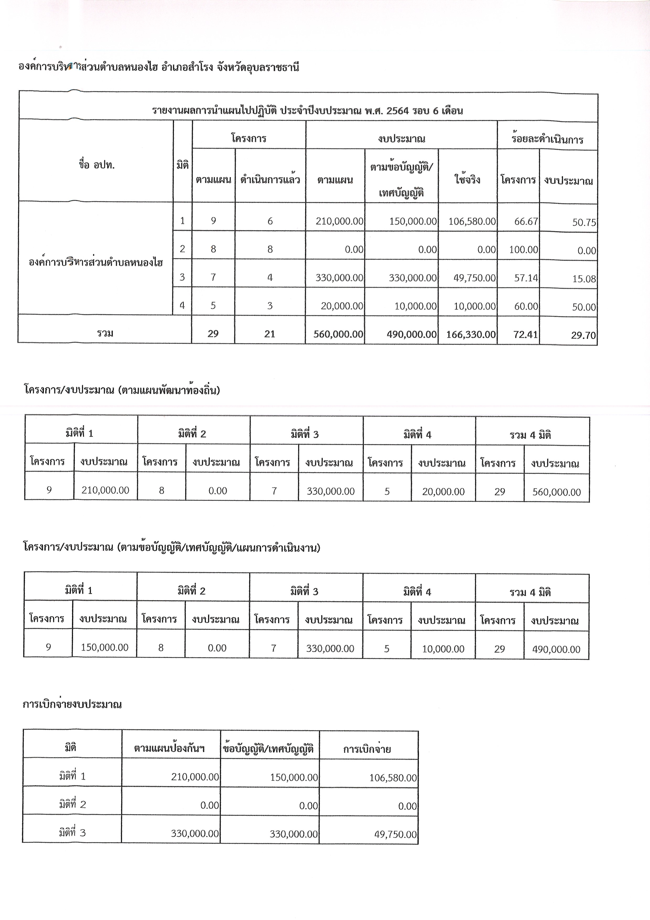 รายงานผลการนำแผนไปปฏิบัติ ประจำปีงบประมาณ พ.ศ.2564 รอบ 6 เดือน