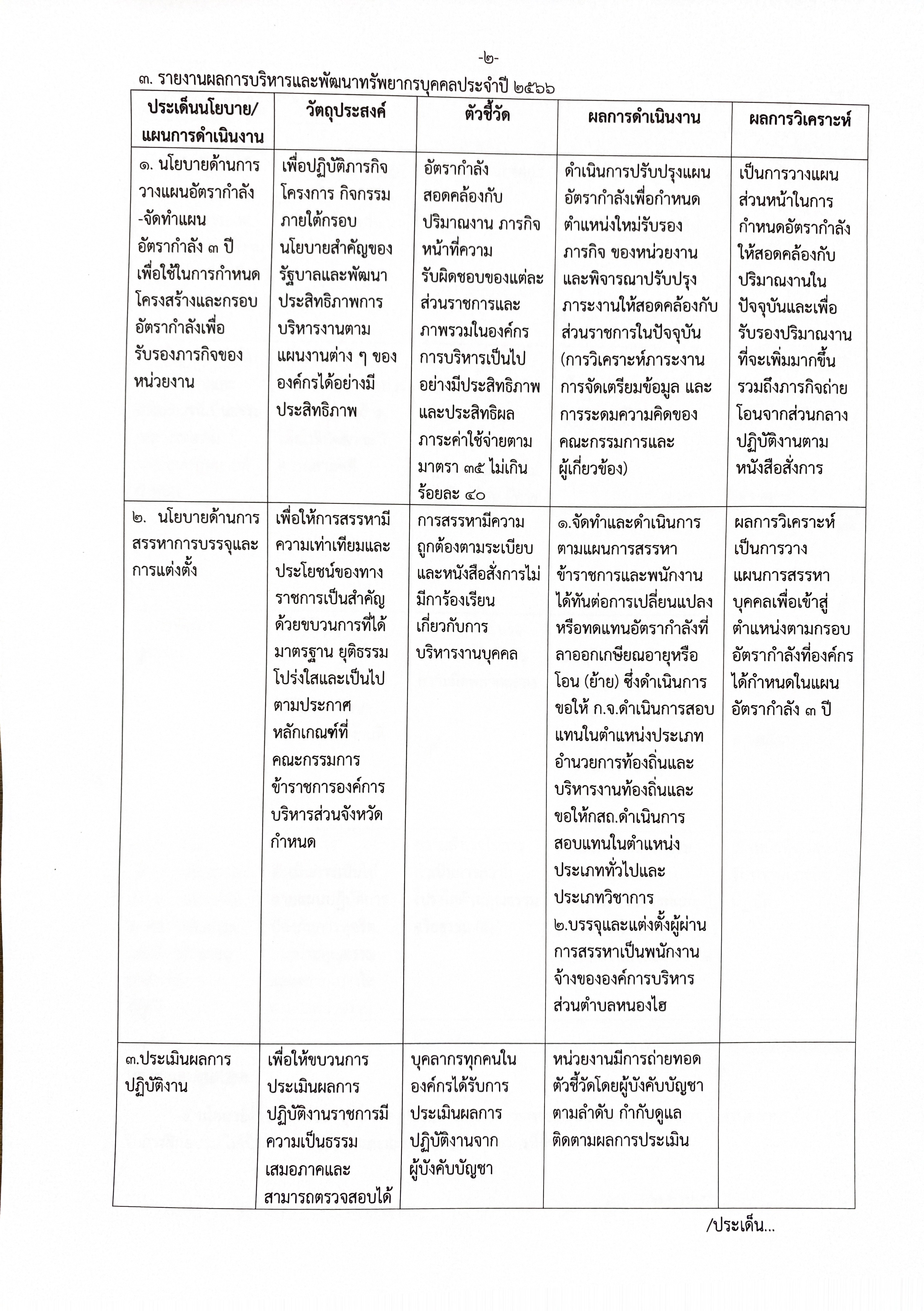 รายงานผลการบริหารและพัฒนาทรัพยากรบุคคล ประจำปี พ.ศ.2566