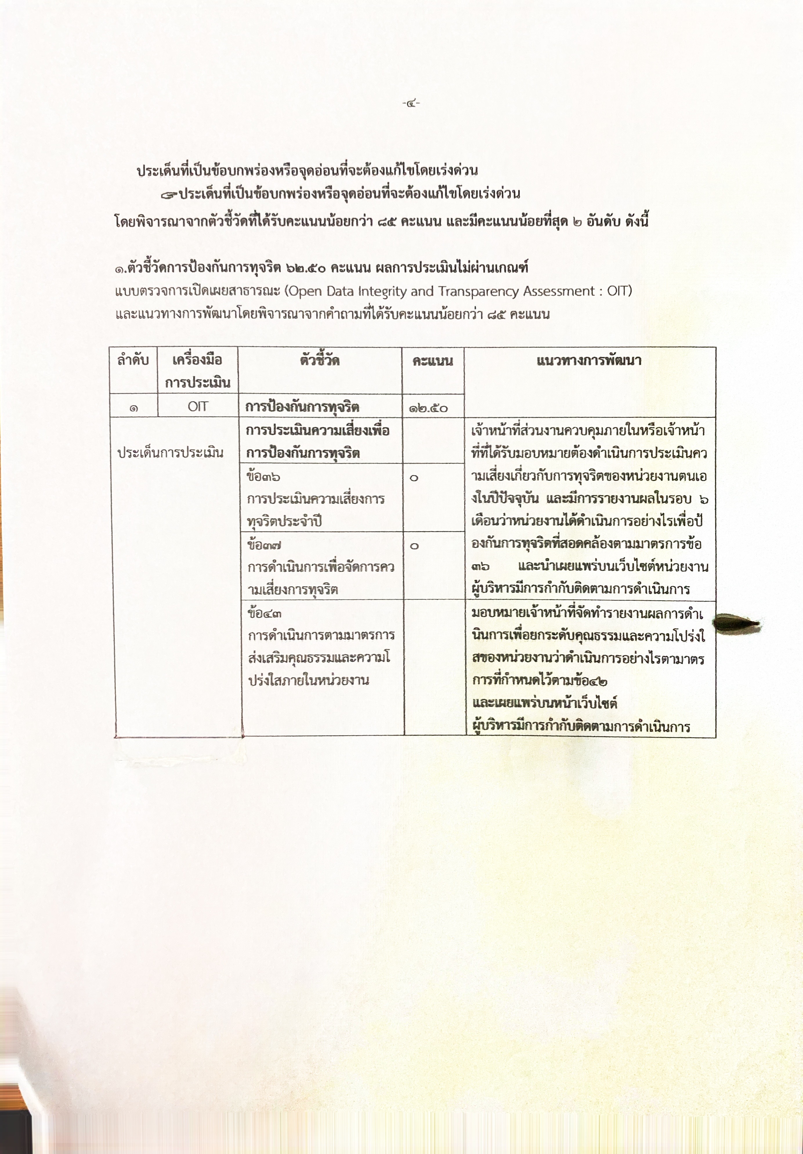 แบบรายงานการวิเคราะห์ผลการประเมินคุณธรรมและความโปร่งใสในการดำเนินงาน