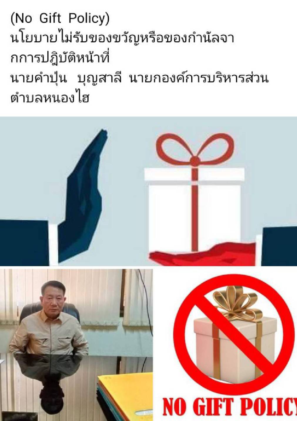 ประกาศนโยบายไม่รับของขวัญและของกำนัลทุกชนิดจากการปฏิบัติหน้าที่