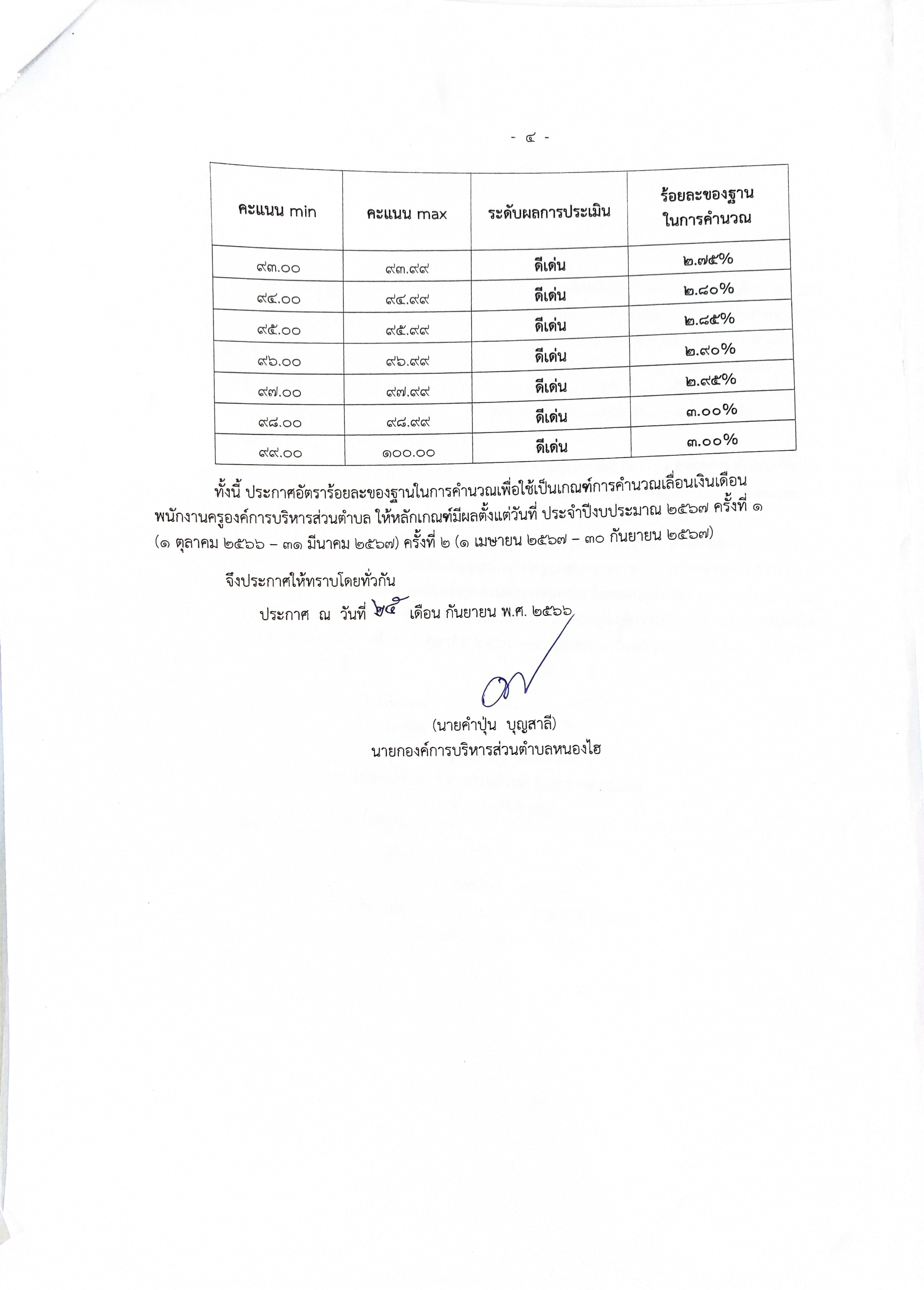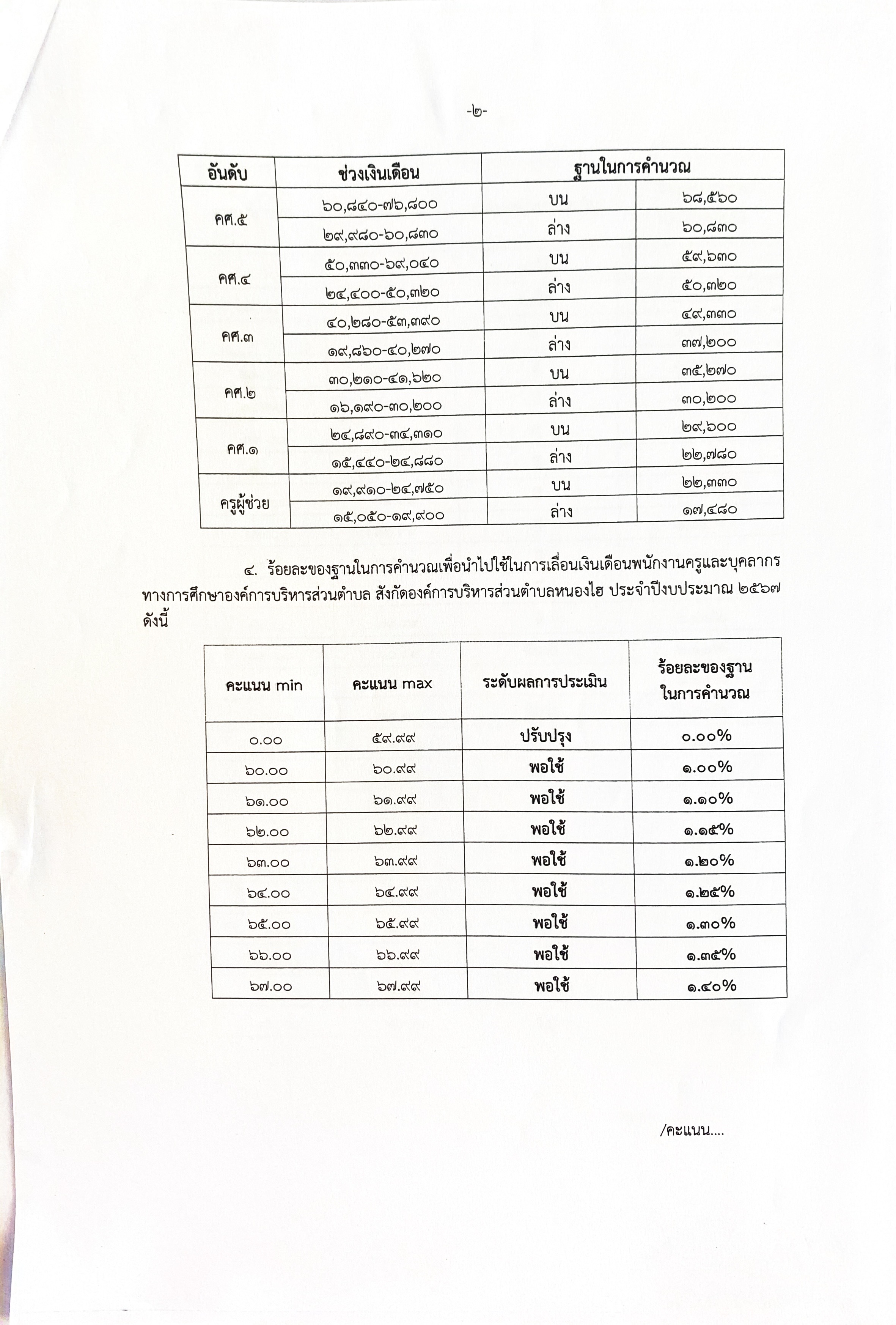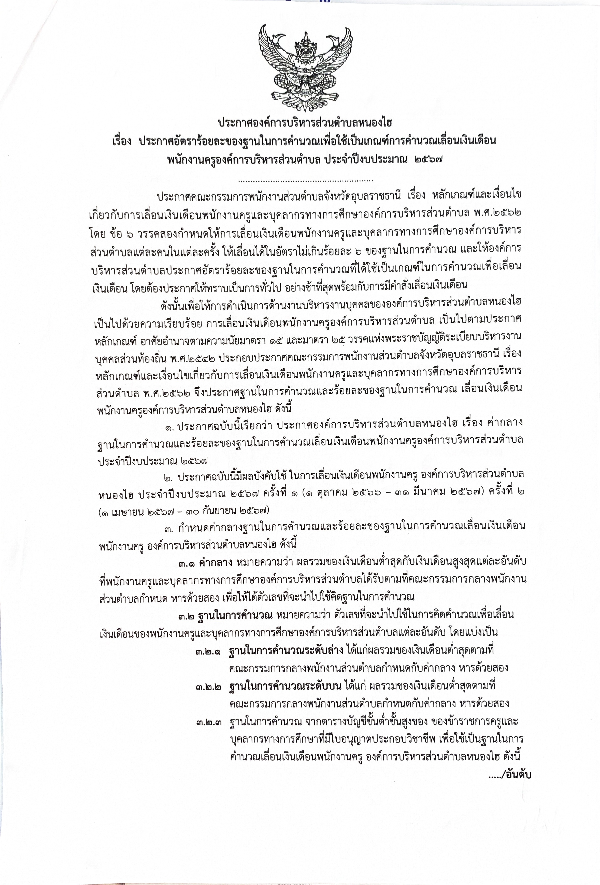 ประกาศอัตราร้อยละของฐานในการคำนวณเพื่อใช้เป็นเกณฑ์การคำนวณเลื่อนขั้นเงินเดือนพนักงานครูองค์การบริหารส่วนตำบล พ.ศ.2567