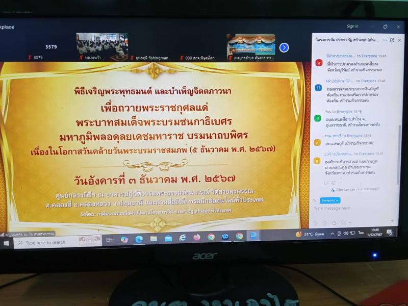 พิธีเจริญพระพุทธมนต์และเจริญจิตตภาวนาเพื่อถวายพระราชกุศลแด่พระบาทสมเด็จพระบรมชนกาธิเบศร มหาภูมิพลอดุลยเดชมหาราช บรมนาถบพิตร เนื่องในโอกาสวันคล้ายวันพระบรมราชสมภพ วันชาติ และวันพ่อแห่งชาติ ประจำปี พ.ศ.2567