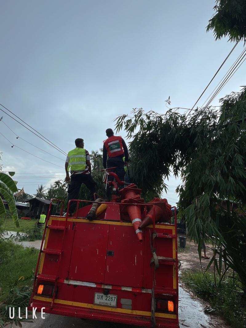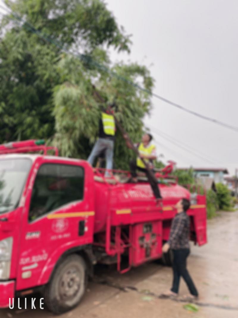 ตัดต้นไม้ไผ่ ล้มทับสายไฟฟ้า และบูรณาการร่วมกับเจ้าหน้าที่การไฟฟ้าส่วนภูมิภาค