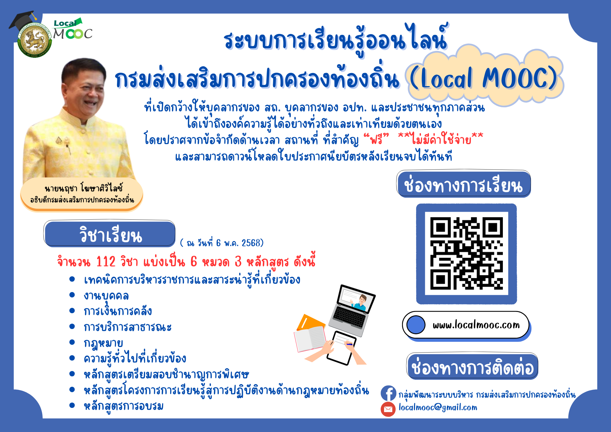 ประชาสัมพันธ์ ระบบการเรียนรู้ออนไลน์ กรมส่งเสริมการปกครองท้องถิ่น (รอบ 6 เดือน) ประจำปีงบประมาณ พ.ศ.2568 [30 มิถุนายน 2568]