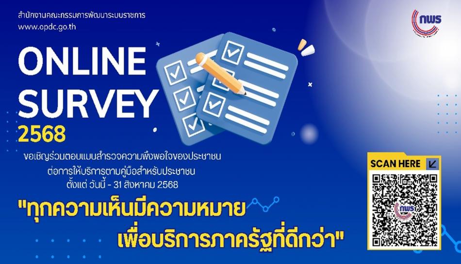 สำนักงาน ก.พ.ร. ขอเชิญร่วมตอบแบบสำรวจความพึงพอใจของประชาชนต่อการให้บริการของหน่วยงานของรัฐ [25 กรกฎาคม 2568]
