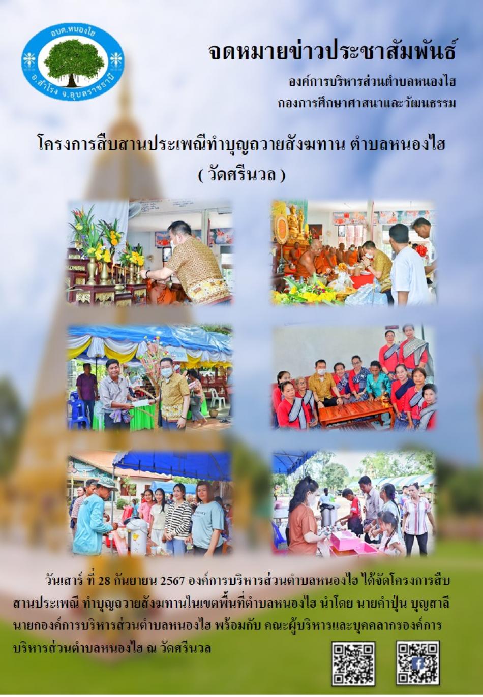 โครงการสืบสานประเพณีทำบุญถวายสังฆทาน (วัดศรีนวล) ต.หนองไฮ อ.สำโรง จ.อุบลราชธานี [28 กันยายน 2567]