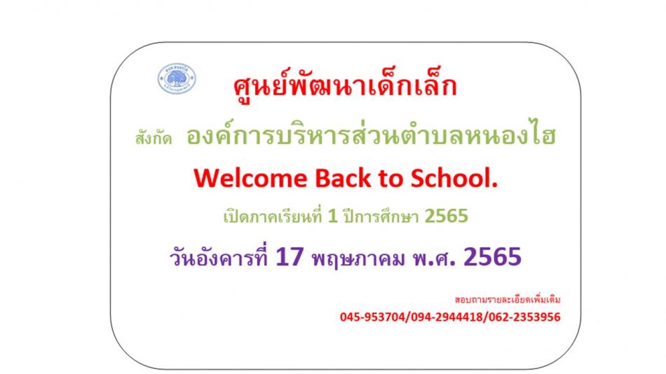 "Welcome Back to School" ศูนย์พัฒนาเด็กเล็ก สังกัดองค์การบริหารส่วนตำบลหนองไฮ [18 พฤษภาคม 2565]