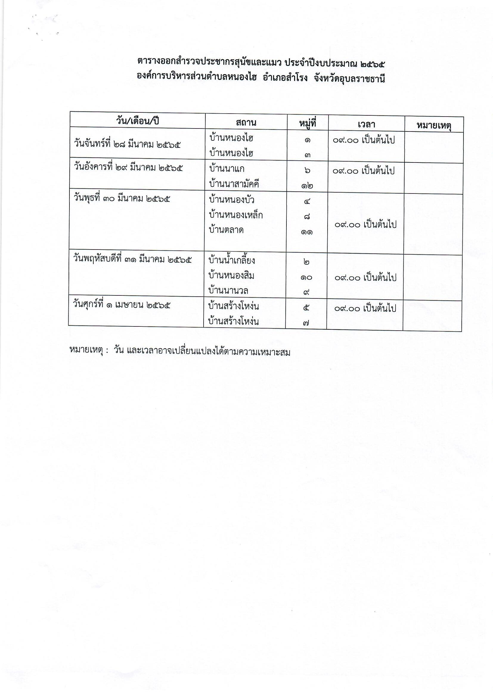 ชื่อเรื่อง : ประชาสัมพันธ์แผนการสำรวจประชากรสุนัขและแมว ประจำปีงบประมาณ 2565