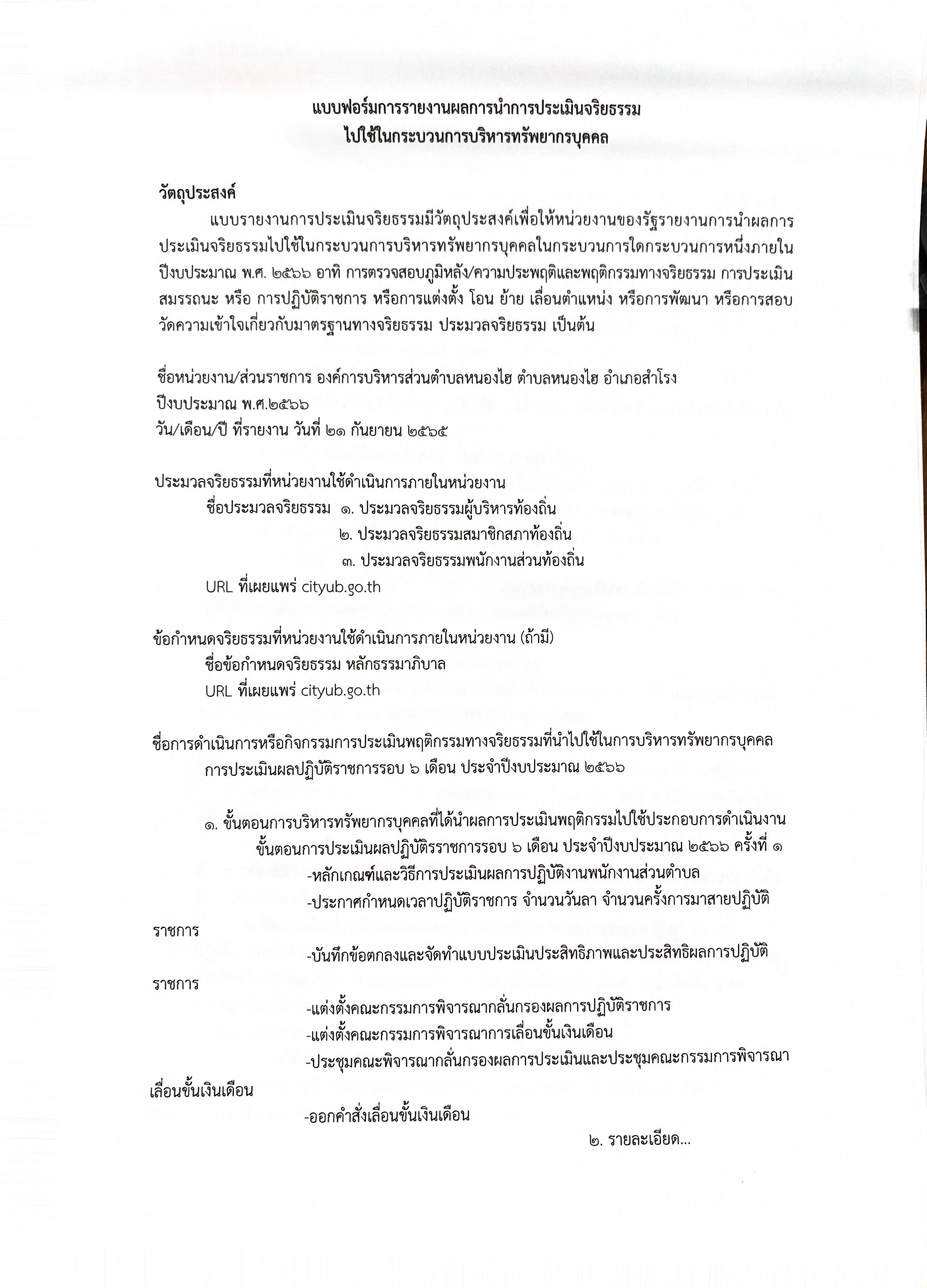 ชื่อเรื่อง : การายงานผลการนำการประเมินจริยธรรมไปใช้ในกระบวนการบริหารทรัพยากรบุคคล