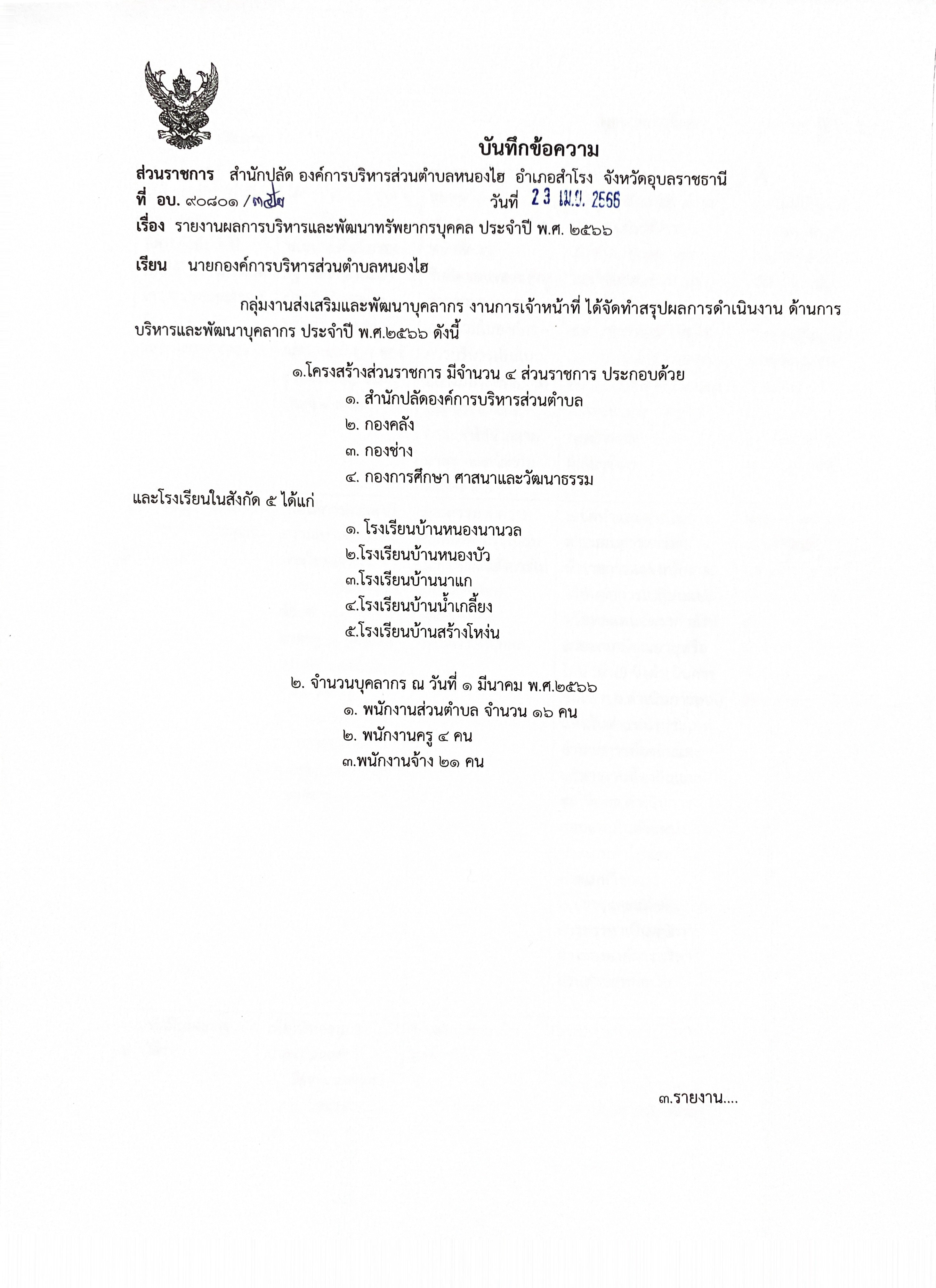 ชื่อเรื่อง : รายงานผลการบริหารและพัฒนาทรัพยากรบุคคล ประจำปี พ.ศ.2566