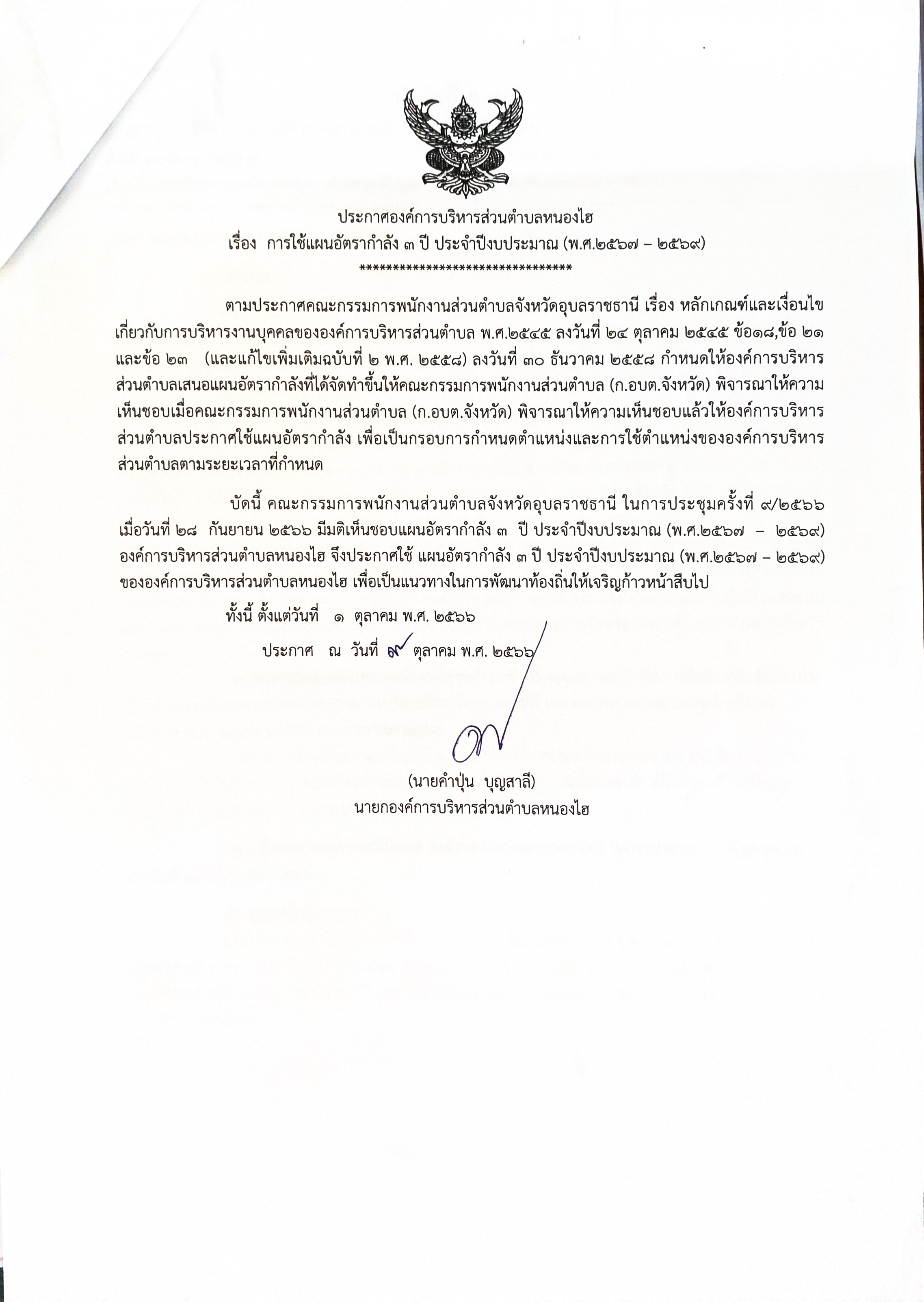 ประกาศใช้แผนอัตรากำลัง 3 ปี ประจำปีงบประมาณ (พ.ศ.2567-2569)