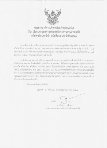 ประกาศองค์การบริหารส่วนตำบลหนองไฮ เรื่อง เรียกประชุมสภาองค์การบริหารส่วนตำบลหนองไฮ สมัยสามัญ สมัยที่สอง ประจำปี 2563